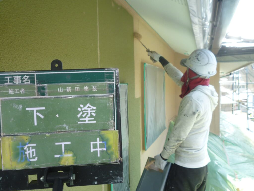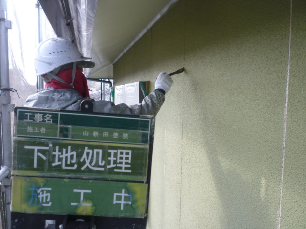 高圧洗浄が済んだ後は、下地処理を行います