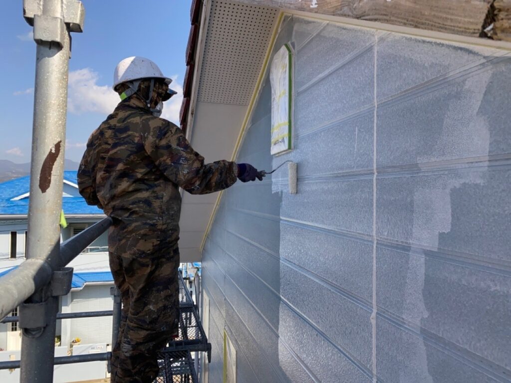 K様邸 シーラー塗布を行いました!おはようございます 昨日は休み返上で、施工中の諫早市の現場K様邸のシーラー塗布を行いました 屋根外壁シーラーとは、塗装に使われる下塗り塗料のことで塗装するときには、塗装面の下地処理をしてから仕上げ塗料を塗る必要があります!この下地処理で使用される下塗り用塗料がシーラーです。シーラーは、下地の資材・状態・使用する塗料に合わせて適切なタイプを使用することが大切です。昨日も今日もポカポカ良い天気ですね\(^_^)/4日前の雪が信じられない・・・・今日の作業も安全第一に頑張ります!!