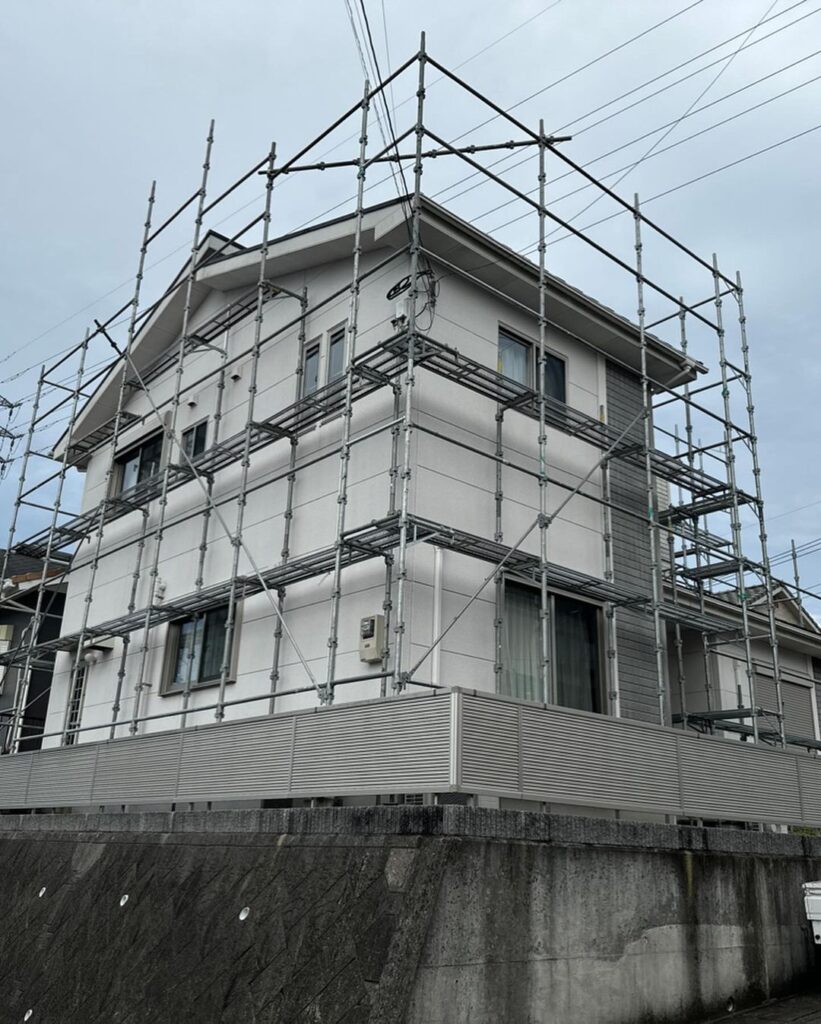 先日、足場を組みました‼️屋根、外壁塗装工事でお世話になります。今後とも宜しくお願い致します^_^