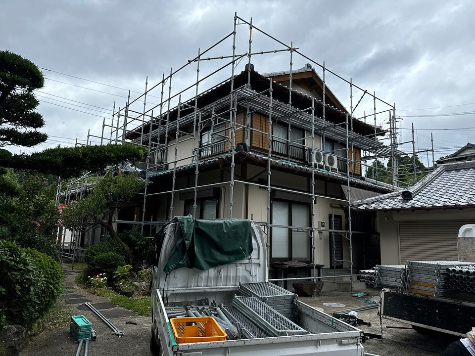 ご自宅で足場を組ませて頂き、お世話になっています🙇‼️