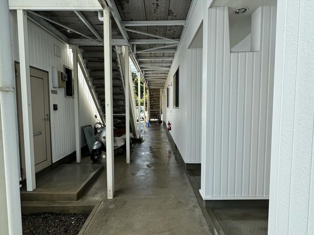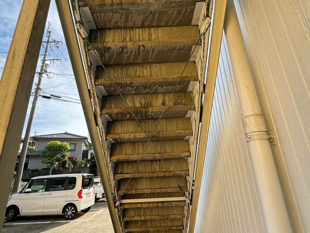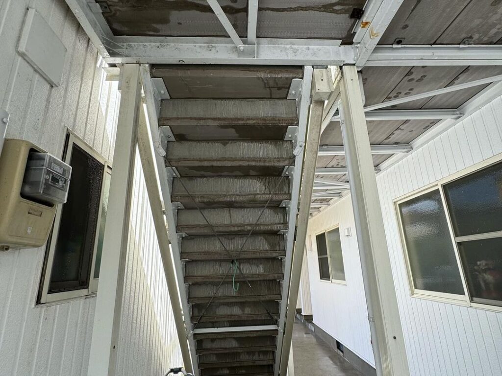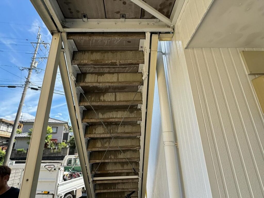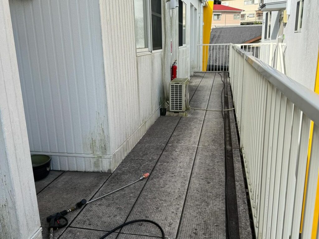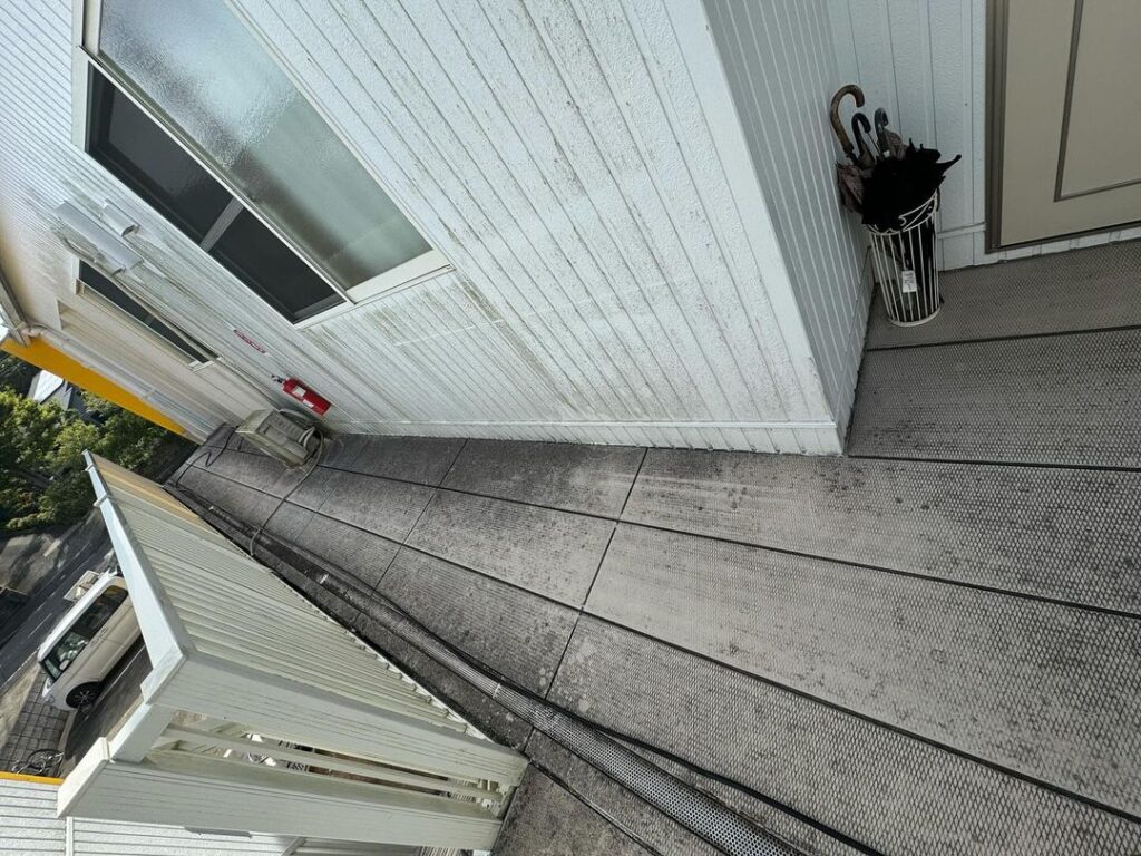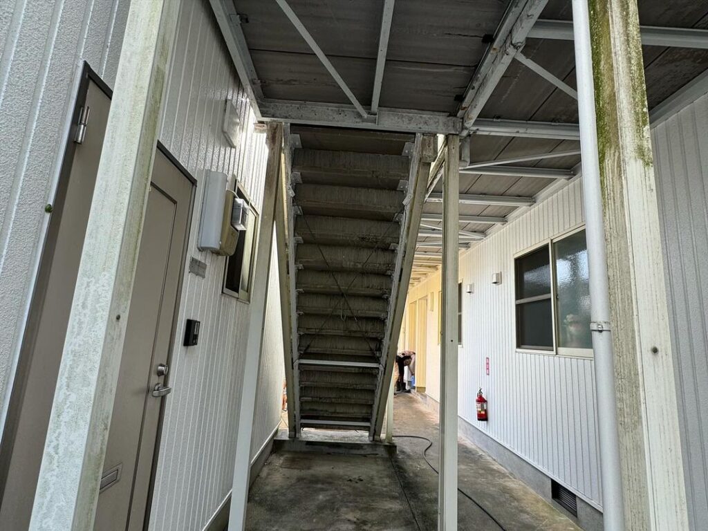 今日の午前中は古賀町APの通路や階段部分の高圧洗浄のご依頼がありましたので洗浄をさせて頂きました^_^