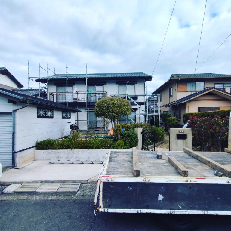 諫早市多良見町の工事が完了し、足場の解体工事を行なってます!