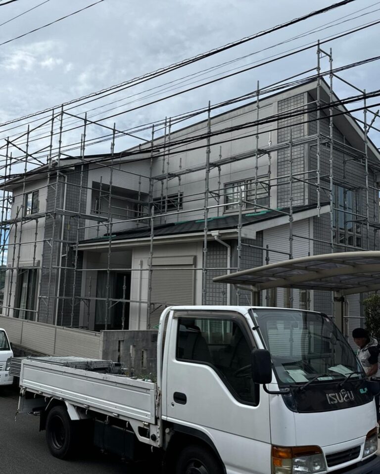 先日、足場を組みました‼️屋根、外壁塗装工事でお世話になります。
