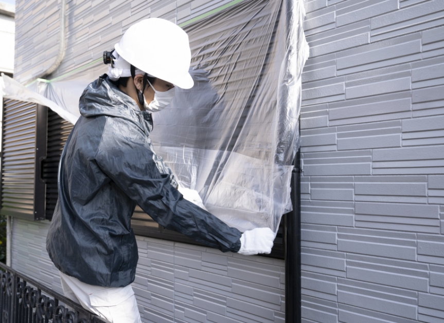 窓やサッシ、植木など、塗料が付着すると困る部分を保護します。