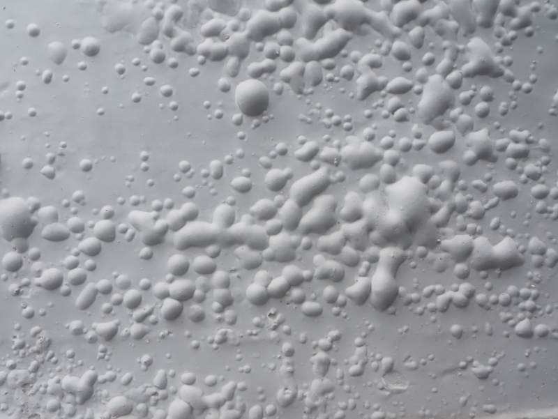 下塗りや中塗りの乾燥が不十分なまま上塗りを行うと、塗膜内部に水分が残った状態になり、乾燥時に膨張し、膨れが生じます。