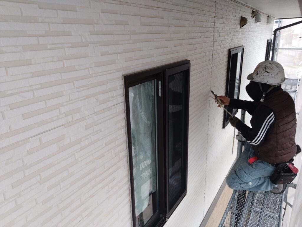 既存のコーキングを専用カッターナイフで、外壁を傷つけないように注意しながら撤去しました。