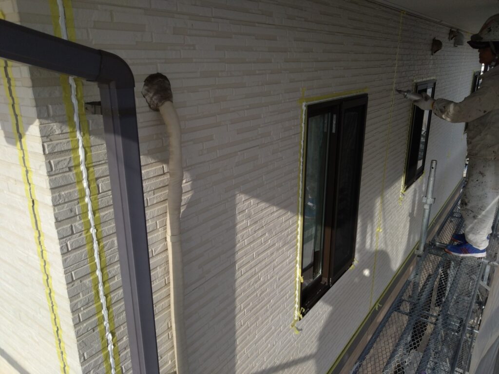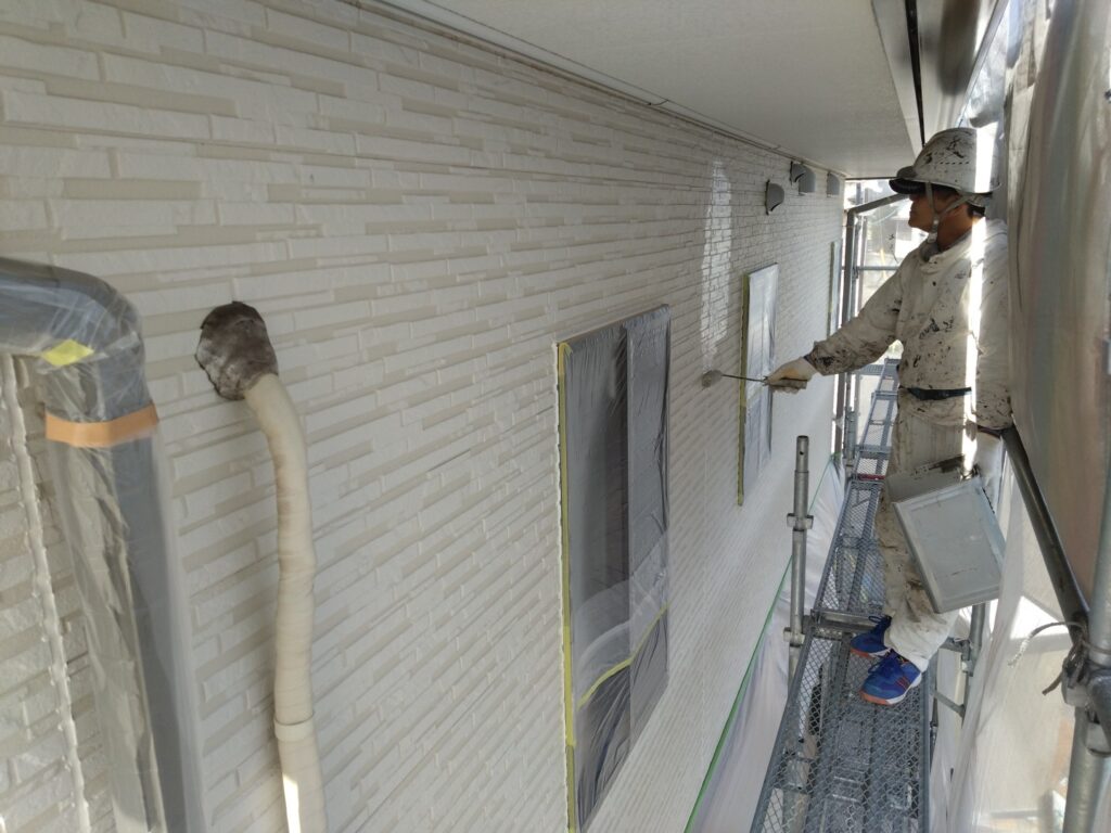 ◆外壁材と上塗りをしっかり密着させるために、下塗り材を塗っていきました。