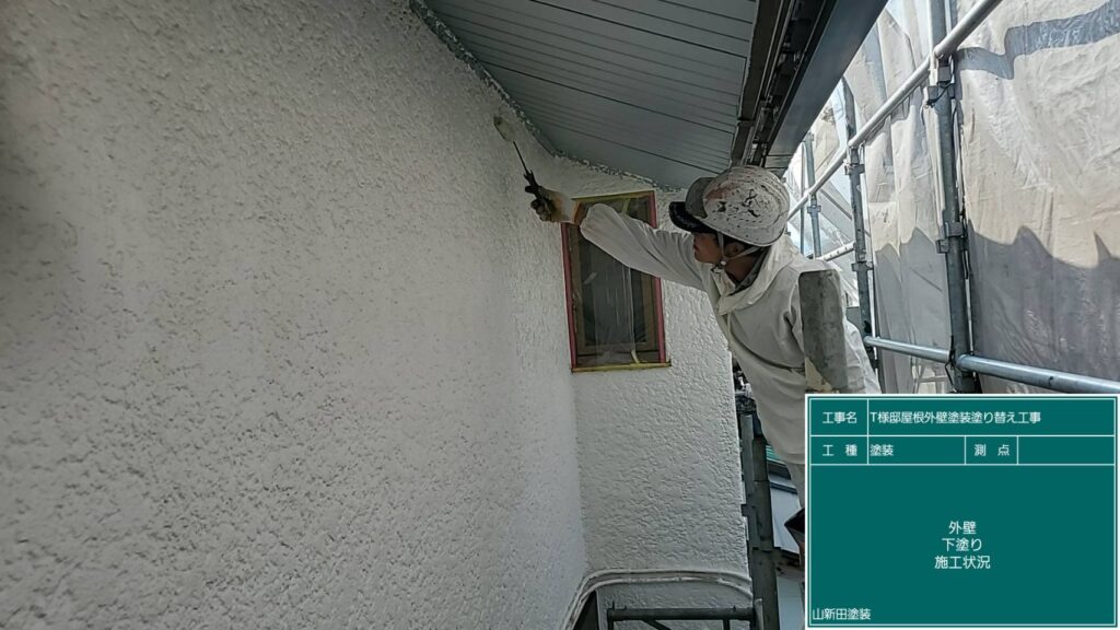 ◆外壁材と上塗りをしっかり密着させるために、下塗り材を塗っていきました。