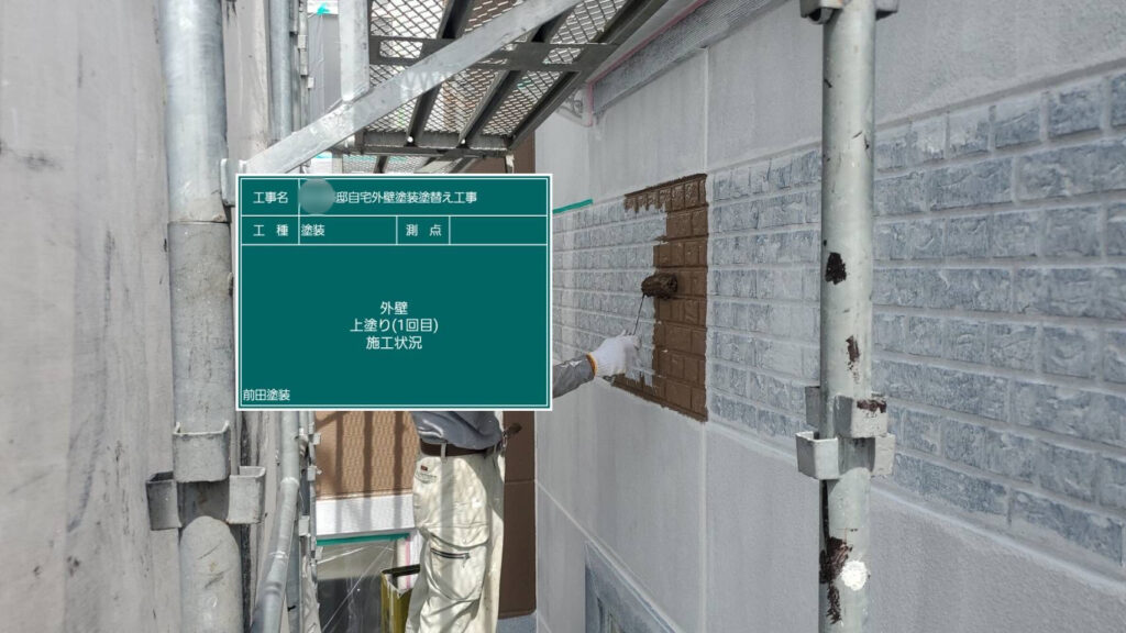 ◆下塗り材を乾燥させたあと、規定の塗布量を守るため、塗料をたっぷりと使用し上塗り2回塗りを行いました。塗ムラや塗り残しがないように丁寧に仕上げました。