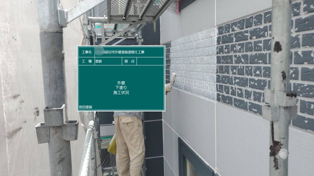 ◆外壁材と上塗りをしっかり密着させるために、下塗り材を塗っていきました。