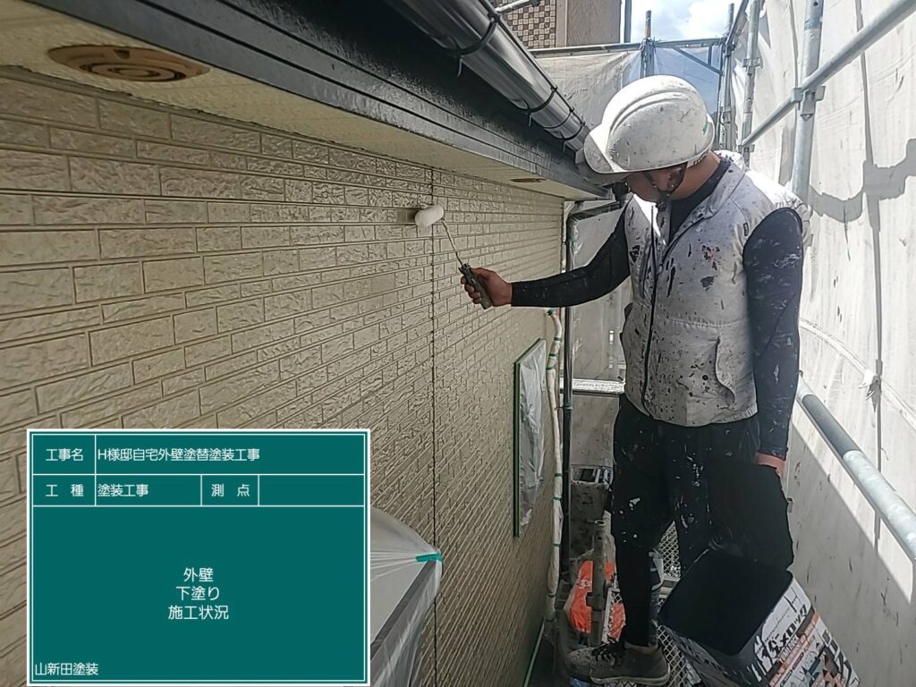 ◆外壁材と上塗りをしっかり密着させるために、下塗り材を塗っていきました。