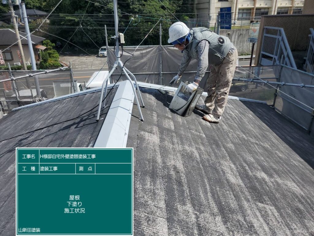 ◆屋根材と上塗り材をしっかり密着させるために、下塗り材を塗っていきます。