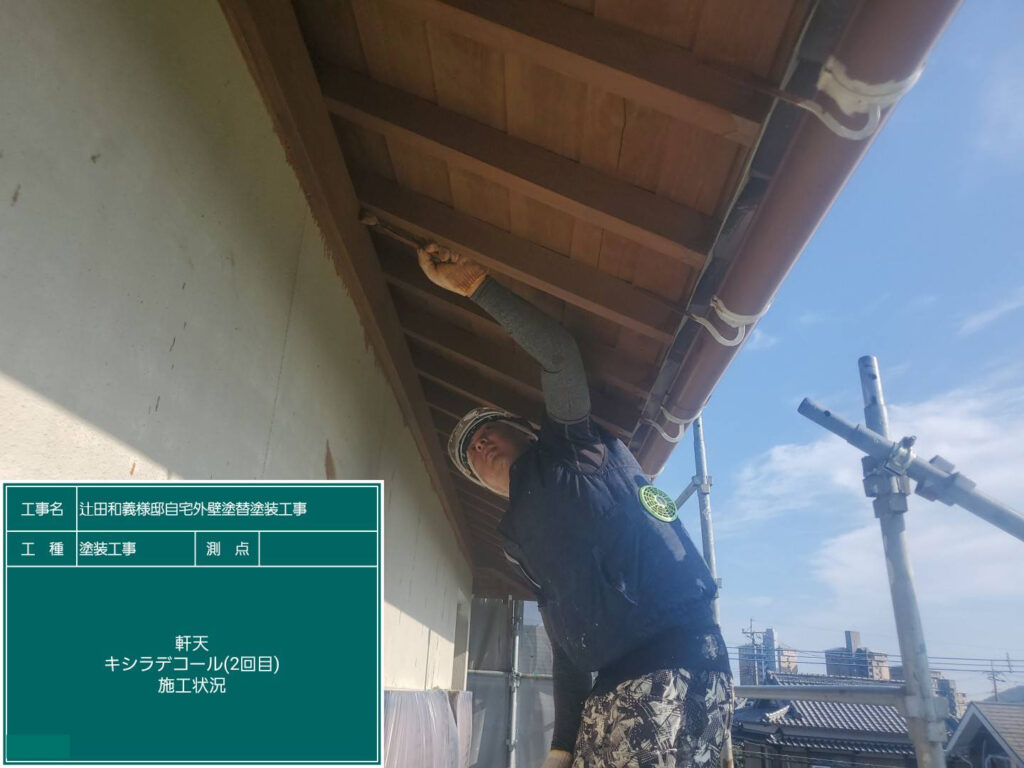 軒天は木部が張り出されていたので『キシラデコール』という木部専用の塗料を使用します。
