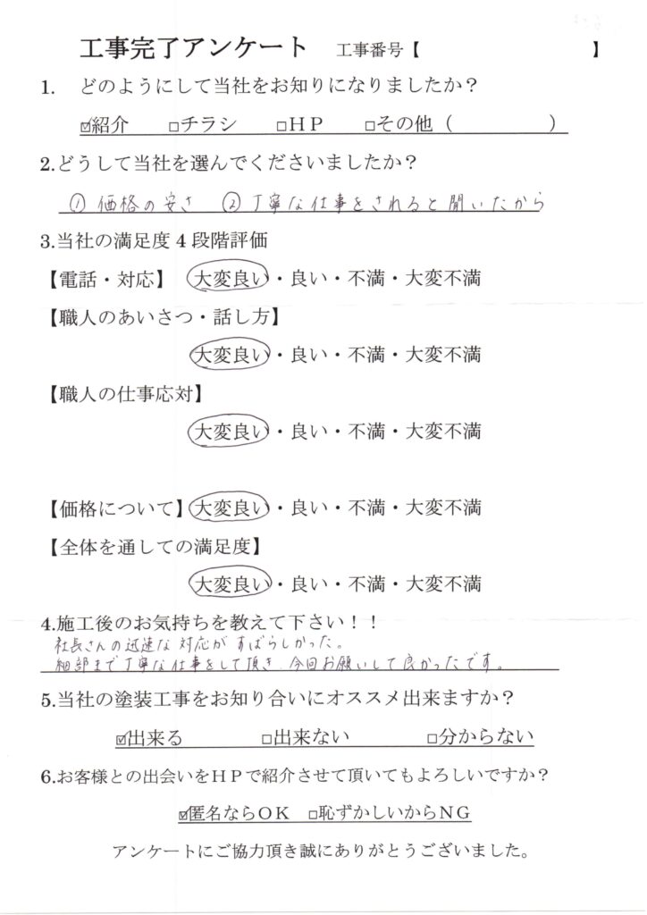 社長さんの迅速な対応がすばらしかった。細部まで丁寧な仕事をして頂き、今回お願いして良かったです。