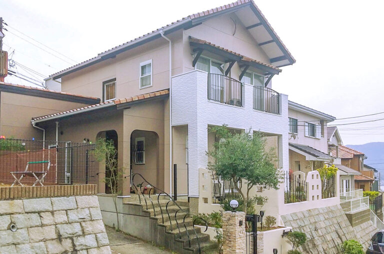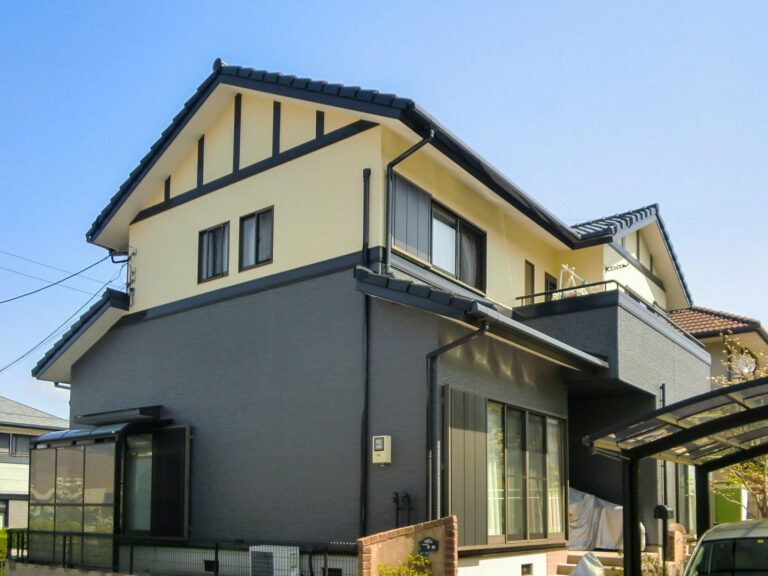 長崎県諫早市 外壁・屋根塗装 アイボリーとグレーのツートンカラー