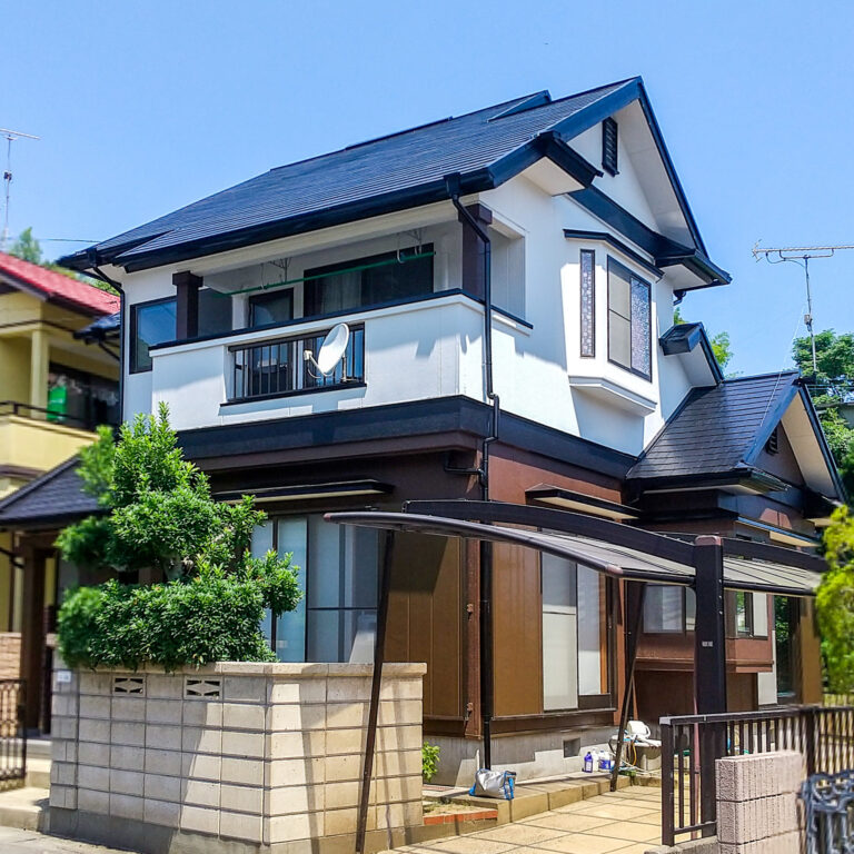 長崎県西彼杵郡時津町 屋根・外壁塗装 人気のホワイト&ブラウンのツート…