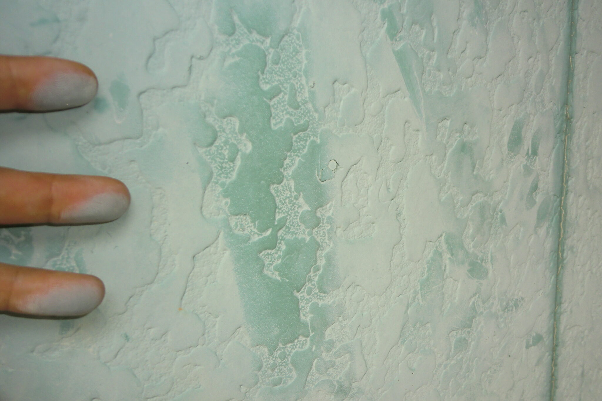 チョーキング(白亜化)は、主に塗装表面が暴露状態の際に紫外線・熱・水分・風等により塗装面の表層樹脂が劣化し、塗料の色成分の顔料がチョークのような粉状になって現れる現象や状態をいいます。