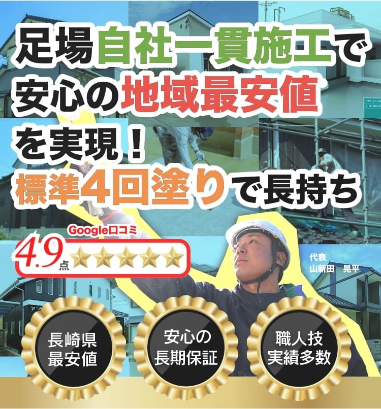 長崎県内でも、足場〜施工まで完全自社施工の塗装会社は数社のみで、下請け業者での施工業者がほとんです。