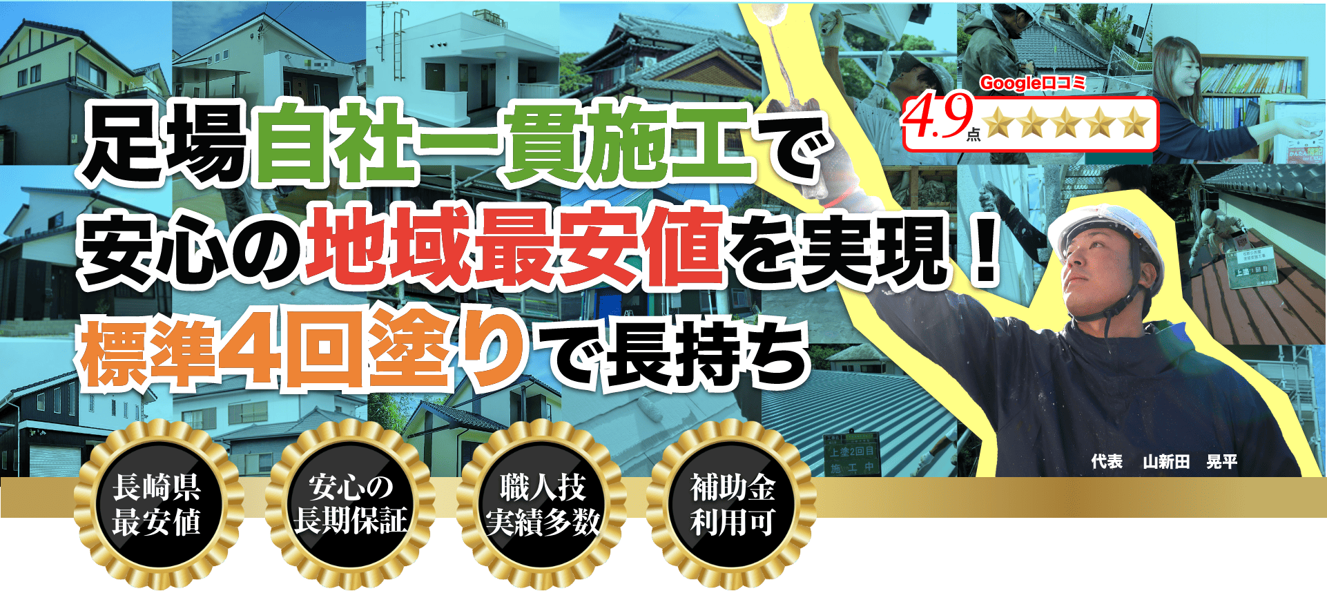 長崎県内でも、足場〜施工まで完全自社施工の塗装会社は数社のみで、下請け業者での施工業者がほとんです。