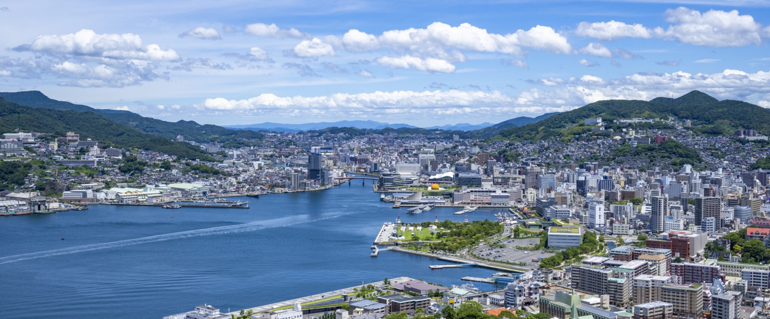 長崎県の南端に位置する長崎市は、歴史的な背景と美しい港町の風景が特徴の“魅力的な都市”です。市内は山と海に囲まれた地形で、独自の風情と自然環境が共存しています。温暖な気候と海に面した環境が生み出す美しい景観は、多くの観光客を惹きつけ、また、住みやすい街としても広く認識されています。人口は約43万人、市の面積は約406km²で、自然に囲まれた生活を送りながらも、都市機能が充実しているため、暮らしやすさが魅力です。特に長崎駅や長崎空港へのアクセスが便利で、他の都市との移動もスムーズです。
