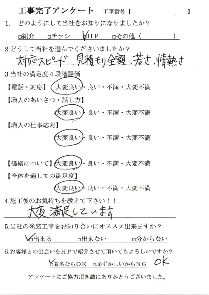 対応スピード・見積もり価格・若さ・情熱さ全てよかった!長崎県諫早市 ビル屋上防水・外壁塗替塗装施工前施工後施工前施工後施工前施工後Qどのようにしてやまにた塗装をお知りになりましたか?AホームページQどうしてやまにた塗装を選んで下さいましたか?A対応スピード・見積もり価格・若さ・情熱さ全てよかったQ施工後の今のお気持ちを教えて下さい。 A大変満足しています。