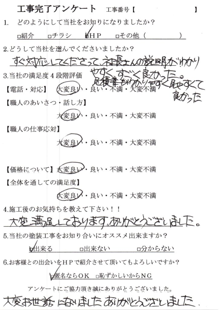 対応が早く、見積り・工事の説明もわかりやすく大変よかった!長崎県諫早市 遮熱塗料 屋根・外壁塗装BeforeDSC_0754Qどのようにしてやまにた塗装をお知りになりましたか?AHPQどうしてやまにた塗装を選んで下さいましたか?Aすぐ対応してくださり、社長さんの説明がわかりやすくすごく良かったです。見積書もわかりやすく、見やすく良かった。Q施工後の今のお気持ちを教えて下さい。 A大変満足しております。ありがとうございました!