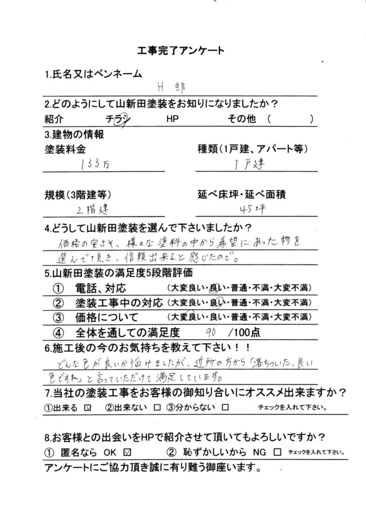 近所の方から「落ち着いた、いい色ですね」と言っていただけて大変満足しています。長…