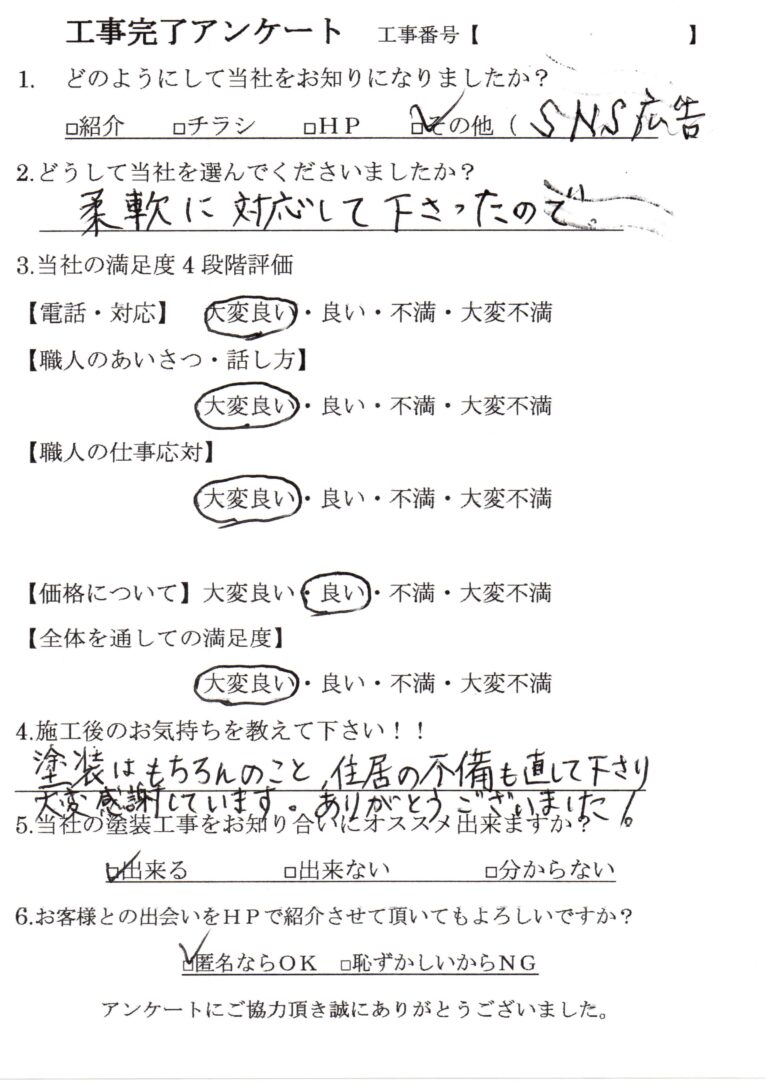 他社とは比べなかったですが、大変満足しています! 長崎県諫早市